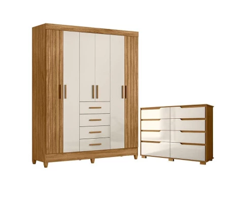 Guarda Roupa Solteiro Aruba e Cômoda Georgia Freijó Off White – Moval