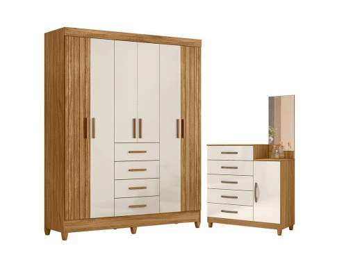 Guarda Roupa Solteiro Aruba e Cômoda Lisboa Freijó Off White – Moval