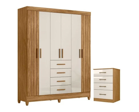Guarda Roupa Solteiro Aruba e Cômoda MS913 Freijó Off White – Moval