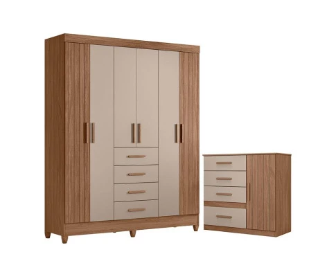 Organize seu quarto com elegância e o melhor custo benefício do mercado. Apresentamos o Guarda Roupa Solteiro Aruba e Cômoda Vênus fabricados pela Moval. Guarda Roupa com 06 portas, 04 gavetas com corrediças metálicas, puxadores em MDF, cabideiro e calceiros em alumínio para melhor organização interna, portas com detalhes frisados, espaço ideal para roupas longas e pés em PVC. A cômoda possui 04 gavetas com corrediças metálicas, 01 porta com detalhes ripados e puxadores em MDF. Fabricado com materiais de alta qualidade que garante resistência e durabilidade ao produto. Confira mais detalhes e aproveite!