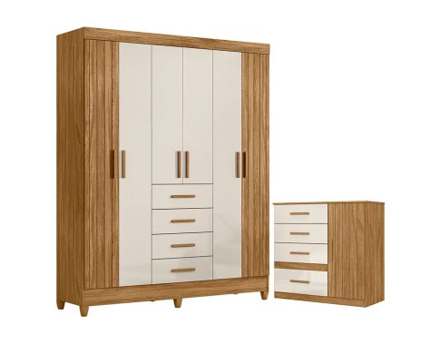 Guarda Roupa Solteiro Aruba e Cômoda Vênus Freijó Off White – Moval