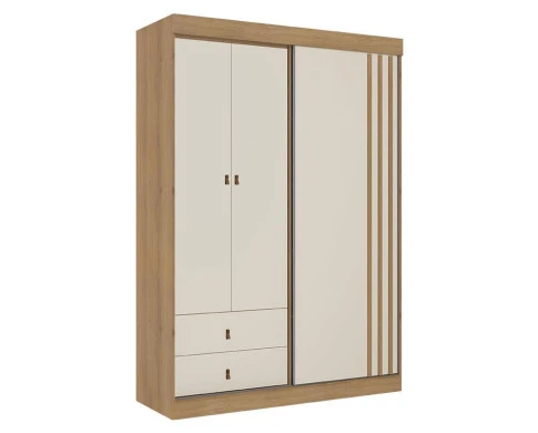 Guarda Roupa Solteiro Aspen 3 Portas Capuccino Off White Acetinado - THB