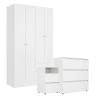 Guarda Roupa Solteiro Astro 4 Portas com Cômoda Gaveteiro Condessa e Mesa de Cabeceira 2 Gavetas Condessa Branco- THB