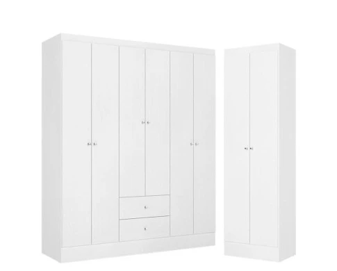 Guarda Roupa Solteiro Astro 6 Portas 2 Gavetas Branco Rosa Flex Acetinado e Multiuso Space Branco - THB