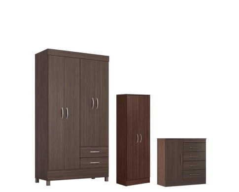 Guarda Roupa Solteiro Astro com Multiuso Golden com Cômoda Montevidéu Café Touch - Demóbile