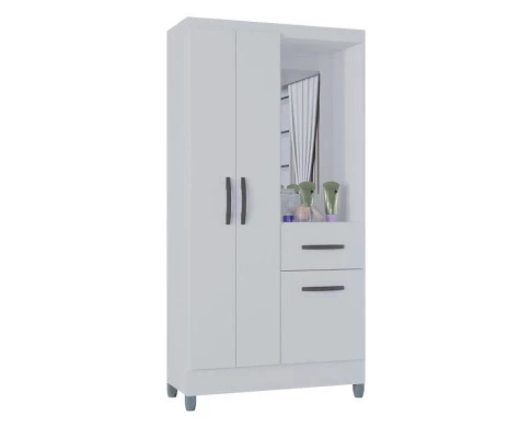 Guarda Roupa Solteiro Atlas 3 Portas Branco Brilho - Poquema