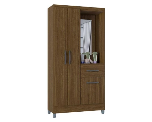 Guarda Roupa Solteiro Atlas Capelinha 3 Portas Castanho Brilho - Poquema