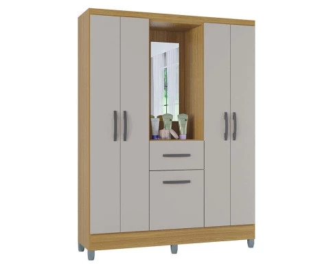 Guarda Roupa Solteiro Atlas Capelinha 5 Portas Damasco Off White Brilho - Poquema