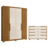 Guarda Roupa Solteiro Califórnia e Cômoda Georgia Freijó Off White - Moval