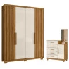 Guarda Roupa Solteiro Califórnia e Cômoda Lisboa Freijó Off White - Moval