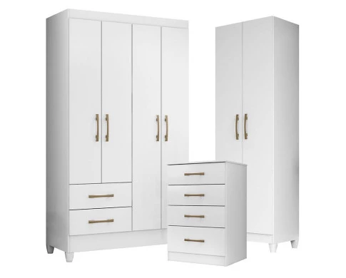 Guarda Roupa Solteiro Chile com Cômoda MS913 e Armário Multiuso New Íris Branco Brilho – Moval