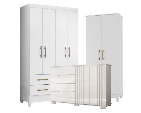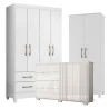 Guarda Roupa Solteiro Chile com Cômoda Texas e Armário Multiuso Jade Branco Brilho– Moval