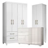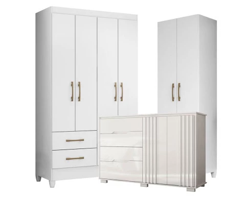 Guarda Roupa Solteiro Chile com Cômoda Texas e Armário Multiuso New Íris Branco Brilho – Moval