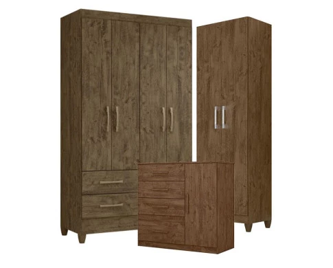 Guarda Roupa Solteiro Chile com Cômoda Vênus e Armário Multiuso New Íris Castanho Wood – Moval
