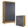 Guarda Roupa Solteiro Chile e Cômoda Dhara Freijó Cinza – Moval
