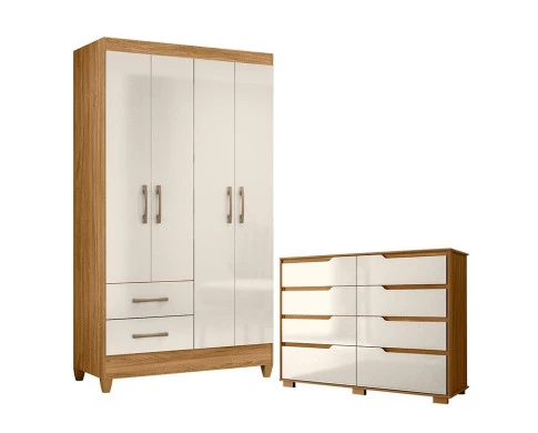 Organize seu quarto com elegância e o melhor custo benefício do mercado. Apresentamos o Guarda Roupa Solteiro Chile e Cômoda Georgia fabricados pela Moval. Guarda Roupa com 04 portas e 02 gavetas com corrediças metálicas, puxadores na cor bronze, cabideiro em madeira para melhor organização interna, espaço ideal para roupas longas e pés em PVC. A cômoda possui 08 gavetas com corrediças telescópicas, puxadores usinados, pés em PVC e um design moderno que combina com qualquer decoração. Fabricado com materiais de alta qualidade que garante resistência e durabilidade ao produto. Confira mais detalhes e aproveite!