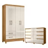 Guarda Roupa Solteiro Chile e Cômoda Georgia Freijó Off White – Moval