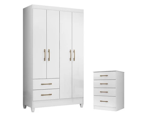 Guarda Roupa Solteiro Chile e Cômoda MS913 Branco Brilho – Moval