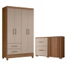 Organize seu quarto com elegância e o melhor custo benefício do mercado. Apresentamos o Guarda Roupa Solteiro Chile e Cômoda Texas fabricados pela Moval. Guarda Roupa com 04 portas e 02 gavetas com corrediças metálicas, puxadores na cor bronze, cabideiro em madeira para melhor organização interna, espaço ideal para roupas longas e pés em PVC. A cômoda possui 04 gavetas com corrediças telescópicas, puxadores usinados, portas com detalhe ripado, dobradiças de 35mm com amortecedor, pés em PVC e um design moderno que combina com qualquer decoração. Fabricado com materiais de alta qualidade que garante resistência e durabilidade ao produto. Confira mais detalhes e aproveite!