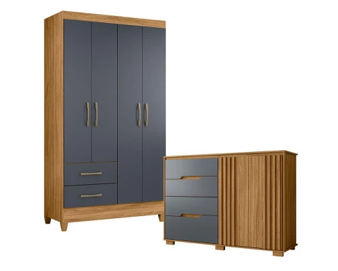 Organize seu quarto com elegância e o melhor custo benefício do mercado. Apresentamos o Guarda Roupa Solteiro Chile e Cômoda Texas fabricados pela Moval. Guarda Roupa com 04 portas e 02 gavetas com corrediças metálicas, puxadores na cor bronze, cabideiro em madeira para melhor organização interna, espaço ideal para roupas longas e pés em PVC. A cômoda possui 04 gavetas com corrediças telescópicas, puxadores usinados, portas com detalhe ripado, dobradiças de 35mm com amortecedor, pés em PVC e um design moderno que combina com qualquer decoração. Fabricado com materiais de alta qualidade que garante resistência e durabilidade ao produto. Confira mais detalhes e aproveite!