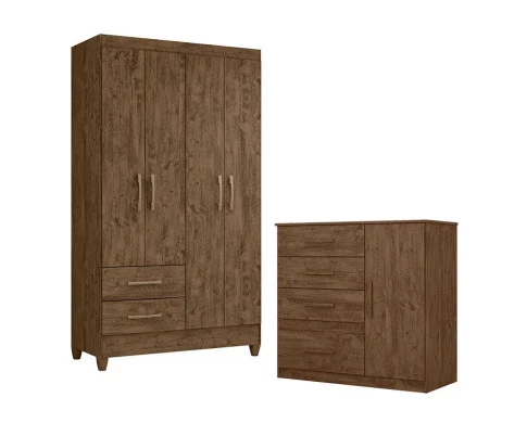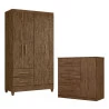 Guarda Roupa Solteiro Chile e Cômoda Vênus Castanho Wood – Moval