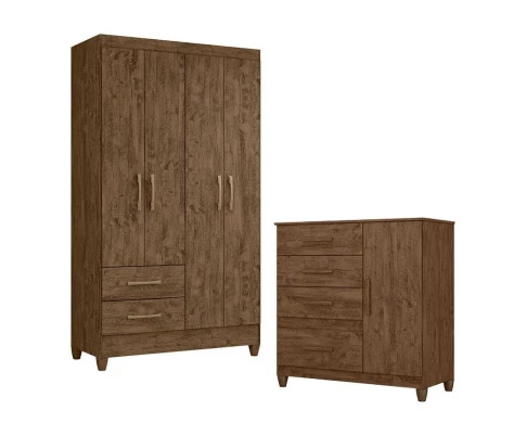 Organize seu quarto com elegância e o melhor custo benefício do mercado. Apresentamos o Guarda Roupa Solteiro Chile e Cômoda Vênus fabricados pela Moval. Guarda Roupa com 04 portas e 02 gavetas com corrediças metálicas, puxadores na cor bronze, cabideiro em madeira para melhor organização interna, espaço ideal para roupas longas e pés em PVC. A cômoda possui 04 gavetas com corrediças metálicas, 01 porta com detalhe frisado, puxadores em MDF na cor bronze, pés em PVC e um design moderno que combina com qualquer decoração. Fabricado com materiais de alta qualidade que garante resistência e durabilidade ao produto. Confira mais detalhes e aproveite!