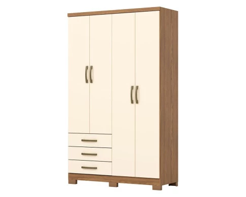 Guarda Roupa Solteiro City 4 Portas 3 Gavetas Nature Off White - Henn