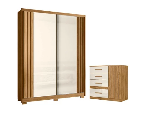 Está montando seu quarto? Apresentamos para você este belo conjunto composto pelo guarda roupa da linha Colorado e a cômoda da linha Vênus. O guarda roupa possui duas portas deslizantes com detalhe ripado em MDF, três gavetas internas com corrediças telescópicas, além de pés em PVC. Complementando o conjunto, a cômoda oferece praticidade com quatro gavetas equipadas com corrediças metálicas e uma porta com detalhe frisado. Fabricados pela Moval, são desenvolvidos em MDP, ideal para quem está procurando design moderno, funcional e acabamentos refinados para organizar suas roupas e acessórios. Aproveite e garanta já o seu!