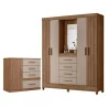 Guarda Roupa Solteiro com Espelho Atenas e Cômoda Vênus Carvalho Fendi – Moval