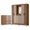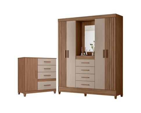 Guarda Roupa Solteiro com Espelho Atenas e Cômoda Vênus com pés Carvalho Fendi – Moval