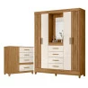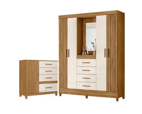 Guarda Roupa Solteiro com Espelho Atenas e Cômoda Vênus com pés Freijó Off White – Moval