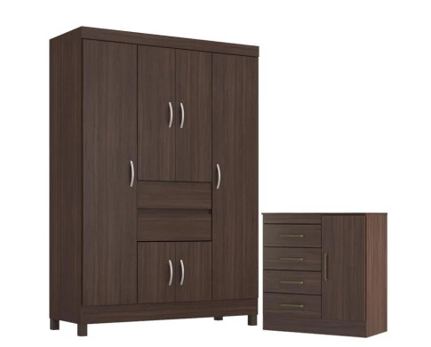 Guarda Roupa Solteiro Ecom 2 com Cômoda Montevidéu Café Touch - Demóbile