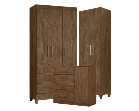 Guarda Roupa Solteiro Lima com Cômoda Vênus e Armário Multiuso New Íris Castanho Wood – Moval