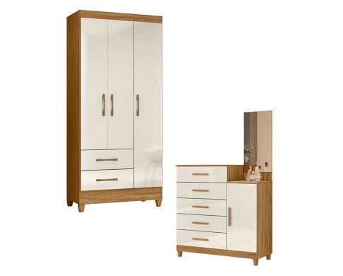 Guarda Roupa Solteiro Lima e Cômoda Lisboa Freijó Off White – Moval