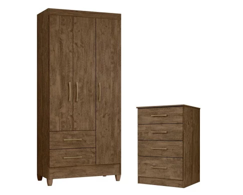 Guarda Roupa Solteiro Lima e Cômoda MS913 Castanho Wood – Moval