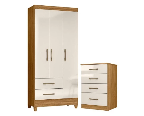 Guarda Roupa Solteiro Lima e Cômoda MS913 Freijó Off White – Moval
