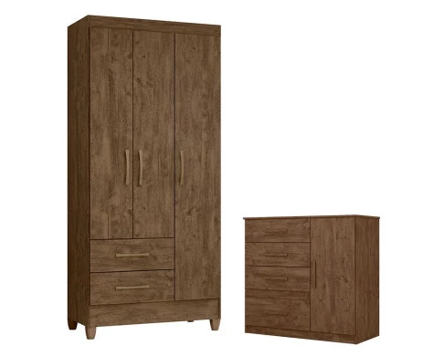 Guarda Roupa Solteiro Lima e Cômoda Vênus Castanho Wood Flex – Moval