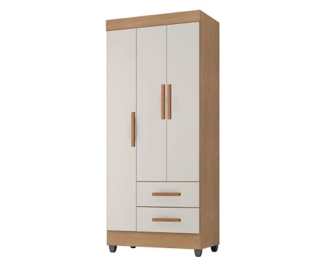 Guarda Roupa Solteiro Lite 3 Portas Nature Off White - Móveis Leão