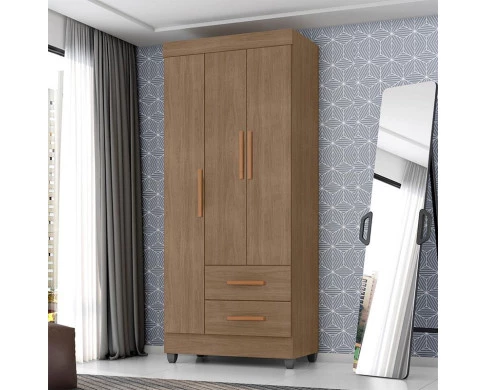 Guarda Roupa Solteiro Lite Ambiente 3 Portas Carvalho Oak - Móveis Leão
