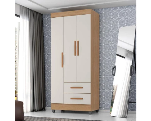Guarda Roupa Solteiro Lite Ambiente 3 Portas Nature Off White - Móveis Leão