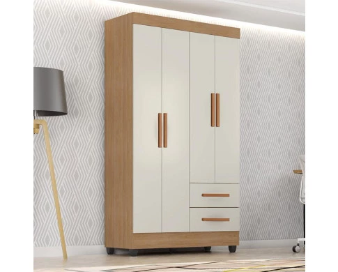 Guarda Roupa Solteiro Lite Ambiente 4 Portas Nature Off White - Móveis Leão