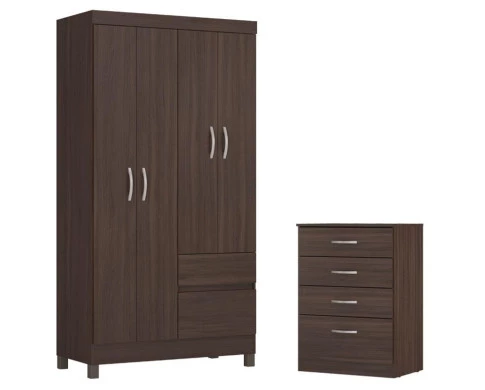 Guarda Roupa Solteiro Lótus com Cômoda Astral Café Touch -Demóbile