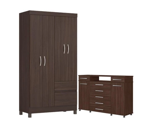 Guarda Roupa Solteiro Lótus com Cômoda London Café - Demóbile