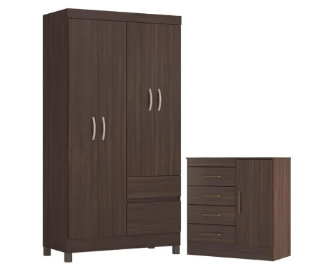 Guarda Roupa Solteiro Lótus com Cômoda Montevidéu Café Touch -Demóbile