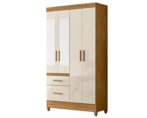 Guarda Roupa Solteiro Madri 4 Portas Freijó Off White com Espelho - Moval