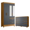 Guarda Roupa Solteiro com espelho Madri e Cômoda Georgia Freijó Cinza – Moval