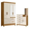 Guarda Roupa Solteiro Madri com espelho e Cômoda Lisboa Freijó Off White – Moval