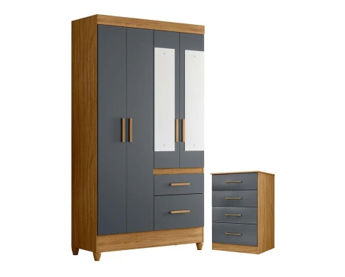 Guarda Roupa Solteiro Madri com espelho e Cômoda MS913 Freijó Cinza – Moval