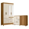 Guarda Roupa Solteiro Madri com espelho e Cômoda Texas Freijó Off White – Moval