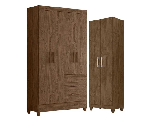 Guarda Roupa Solteiro Madri e Armário Multiuso New Íris Castanho Wood - Moval